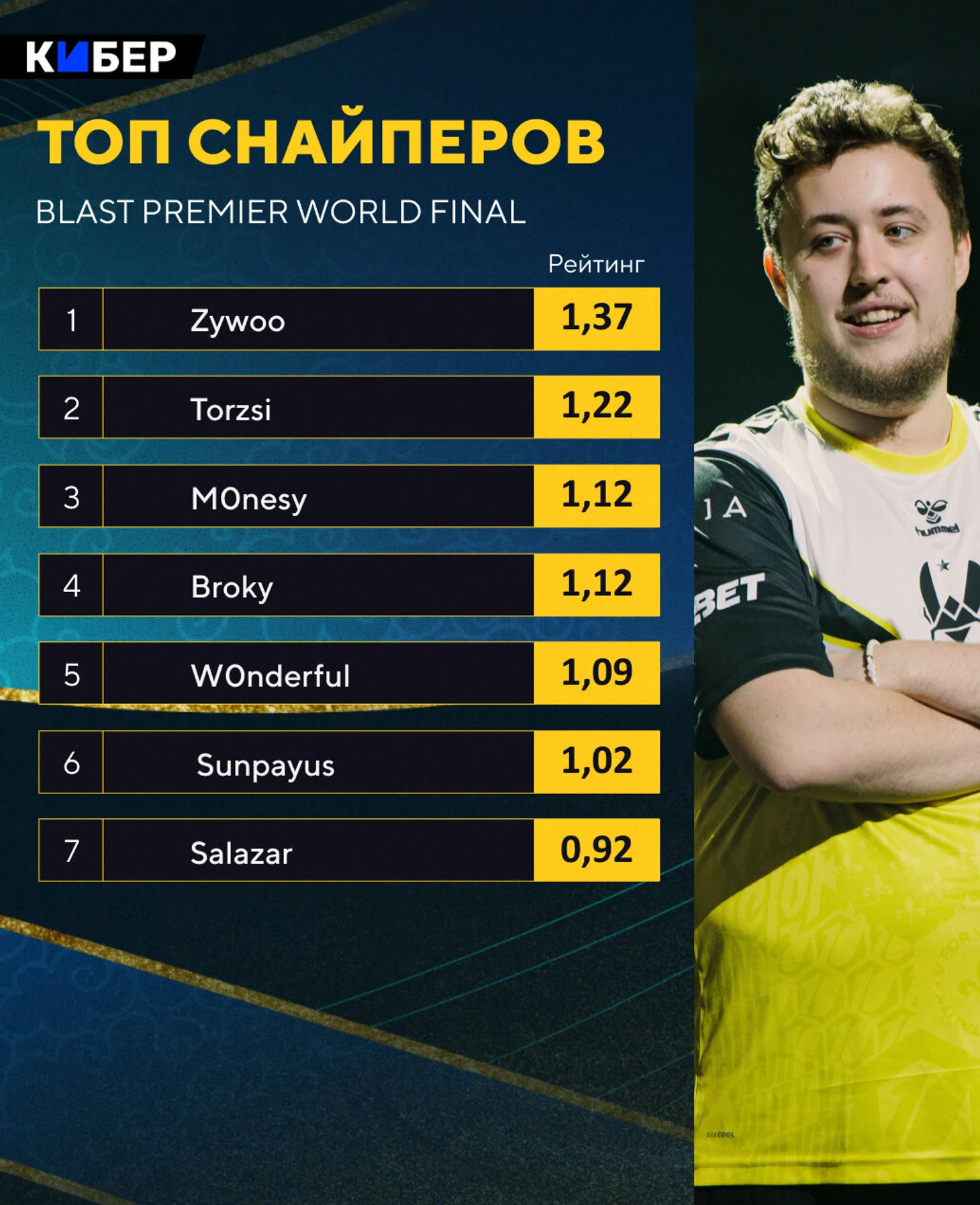 Закончился Blast Premier World Final – последний турнир в 2023 году. Зайву получил очередную награду MVP и окончательно закрыл вопрос по лучшему игроку сезона, а разобраться с остальными результатами поможет наш индивидуальный рейтинг игроков.