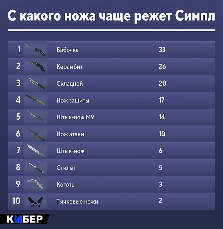 Кто в CS чаще всех режет с ножа? Симпл – в топе? Большое исследование Кибера