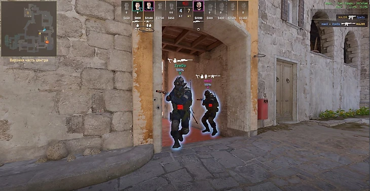 Окей, посмотрим, как ситуация выглядит на демке в самой CS 2. Для лучшего понимания включим красные точки, которые показывают импакт от выстрелов.