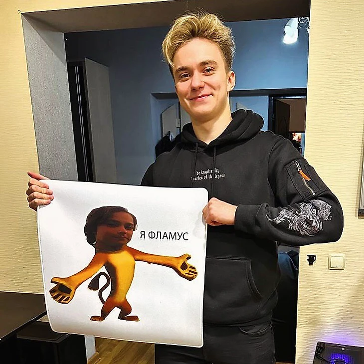 В VK-группе Фламуса до сих пор на аватарке стоит именно мемная картинка с Алексом. Он загрузил ее еще в 2018 году – тогда игроку было 14 лет.
