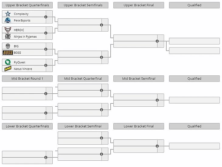 Всего на турнире 4 группы. Победитель каждой из них попадает напрямую в четвертьфинал. Команды, занявшие второе место, проходят по второй раунд плей-офф. Участники с третьего места и победители сетки последнего шанса сыграют в первом раунде плей-офф.
