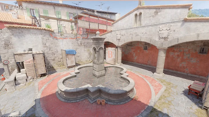 Самое важное изменение на карте – снос арок. Их критиковали многие игроки, так как было сложно кидать гранаты, а карта казалась слишком узкой. Во-первых, убрали большую арку на миду.