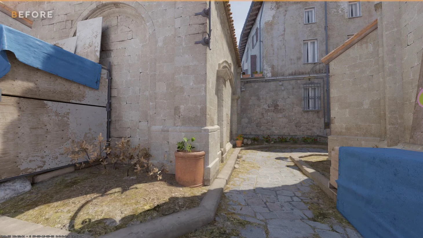 Местами заметить отличия довольно сложно. Например, на выходе с КТ на точку Б разработчики убрали скамейку и карнизы у окна.