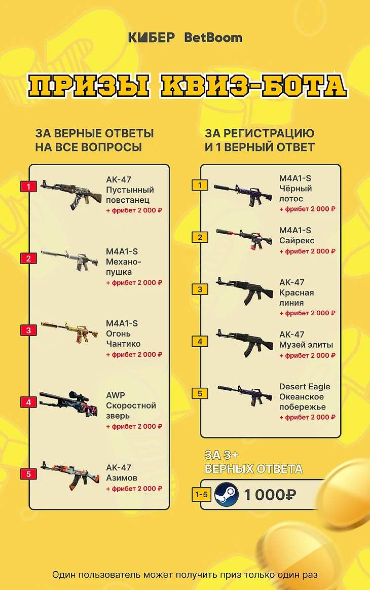 3. Если вы зарегистрированы в BetBoom и правильно ответили хотя бы на один вопрос, то вас ждет отдельный розыгрыш: