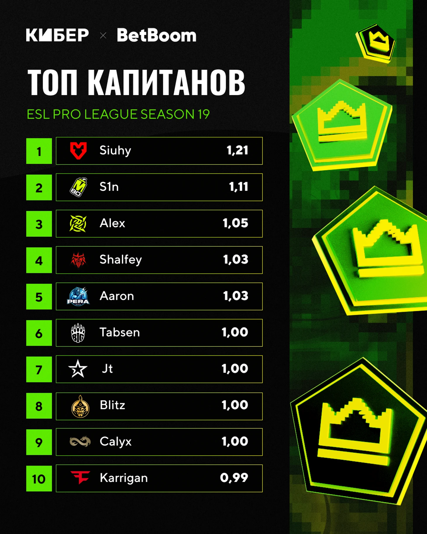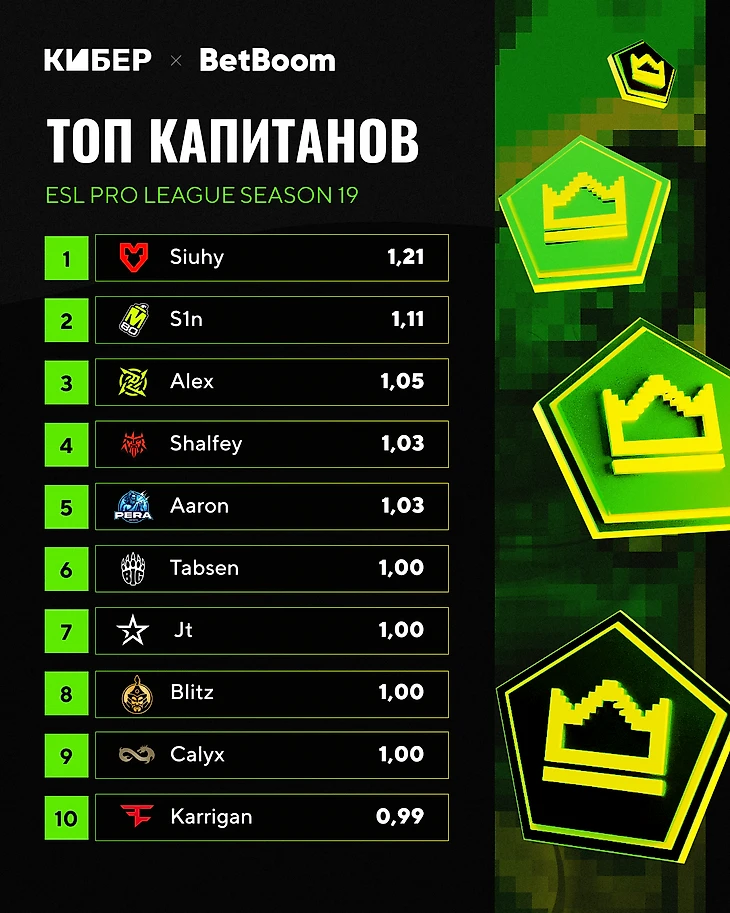 Примечание: снайперы-капитаны не учитываются в топе капитанов.