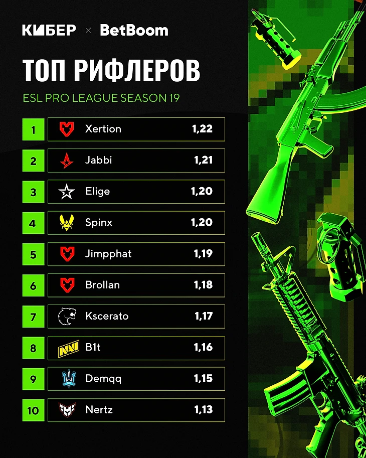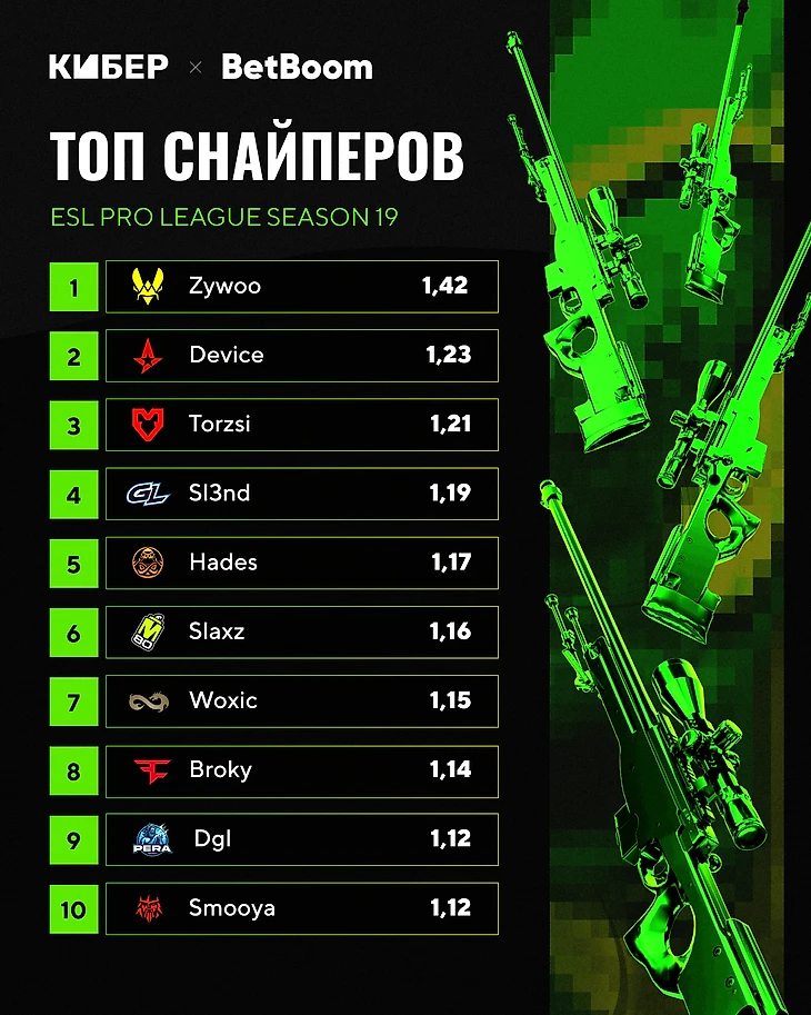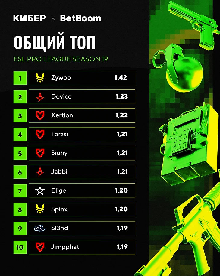 Закончился крупный турнир – ESL Pro League 19. 32 команды в течение трех недель играли матчи, поэтому индивидуальный рейтинг игроков очень точно определяет, кто лучше всех стреляет прямо сейчас.