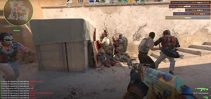 Очки дают не только за убийство, но и за помощь. Просто встаньте рядом с очередью игроков, режущих друг друга в спину, и делайте два выстрела в ноги каждого из них – очки получат все. И не придется тратить время на респаун и очередную пробежку до мида.