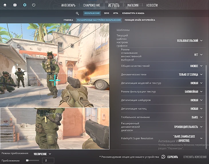 Вы также можете поставить прицел D1fik по коду. Перейдите в настройки по вкладкам «Игра» – «Прицел» и найдите кнопку «Поделиться/импортировать». Вставьте туда код прицела «CSGO-HRUtd-7NxSn-DxZ6w-M4OPW-wjA6Q» и нажмите «Импортировать».