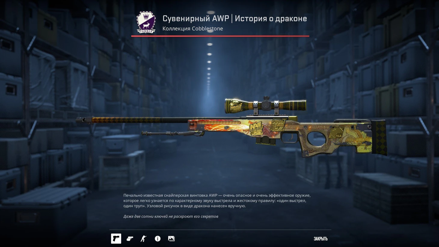 Или крайне редкий сувенирный AWP «История о драконе»: у стримера есть как сувенирка за 4 миллиона, так и обычный за миллион.
