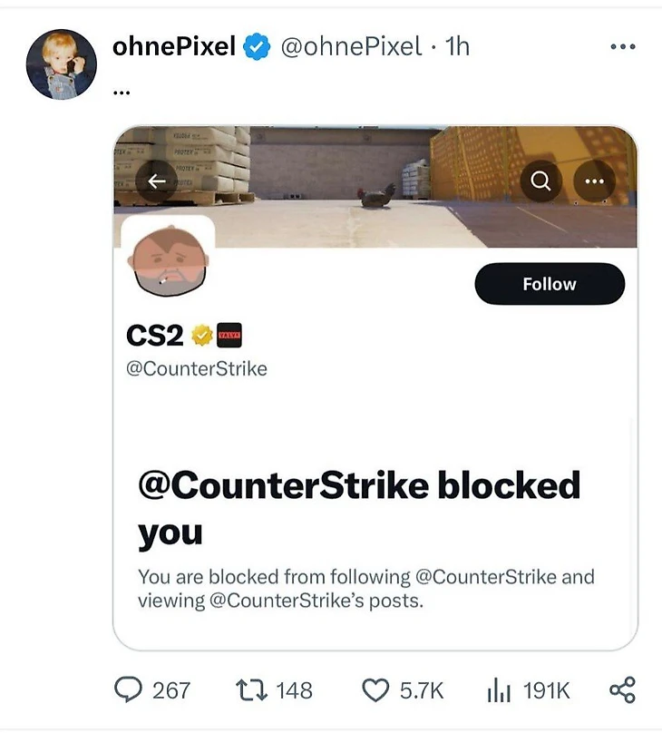 Ohnepixel – самый популярный стример по CS. У него инвентарь на 45 млн и своя команда