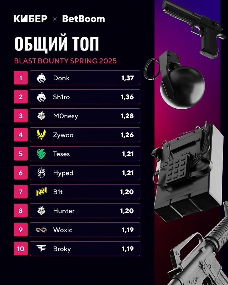Рейтинг BLAST Bounty. Donk – лучший, Sh1ro и M0nesy сразу за ним
