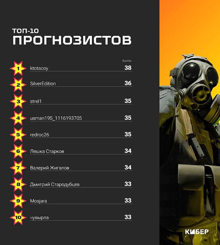 Привет! 29 января стартовал IEM Katowice 2025. К турниру Кибер снова запускает конкурс прогнозов: пишите в комментариях предикты на матчи турнира, зарабатывайте баллы за верные прогнозы и выигрывайте призы.