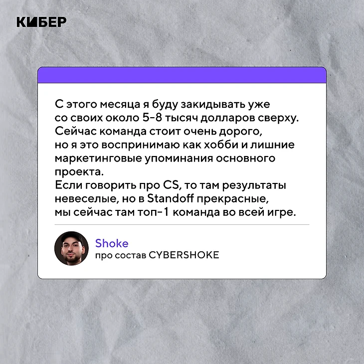 – Предыдущий ростер до Glowiing и Bl1x1 был в плюсе в течение 1,5 года. Но с этого месяца я буду закидывать уже со своих около 5-8 тысяч долларов сверху на ФОТ (Фонд оплаты труда – Кибер), так как только на спонсорской поддержке уже не выжить.