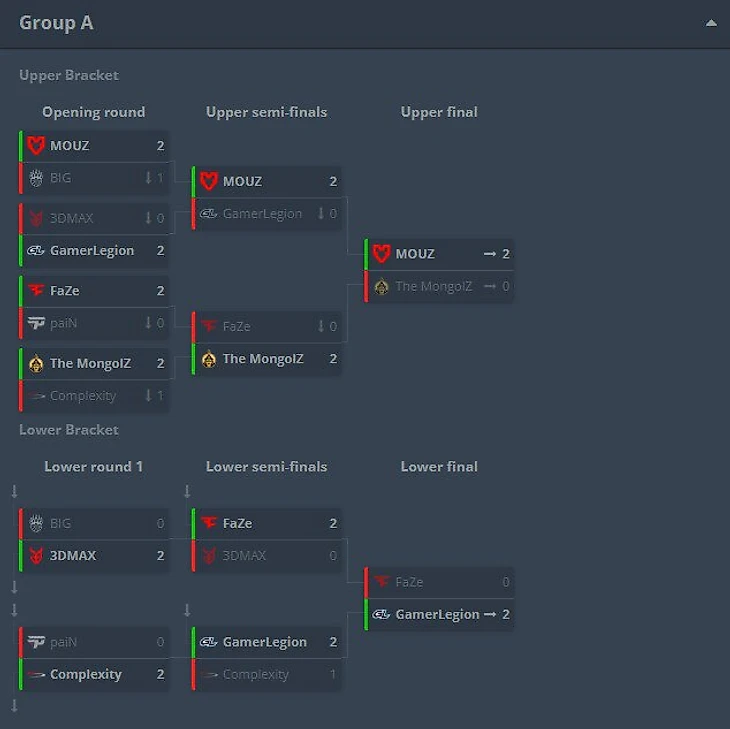 Из группы А в плей-офф выйдут Mouz, The Mongolz и GamerLegion.