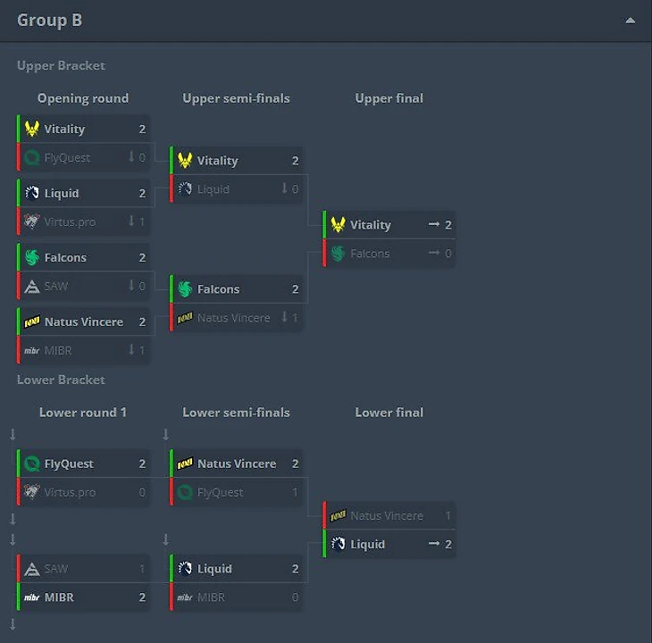 Из группы Б Vitality, Falcons и Liquid.