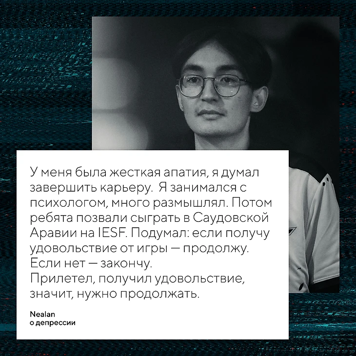 — У меня была жесткая апатия, я думал завершить карьеру. Это было где-то в октябре. Потом меня ребята позвали сыграть в Саудовской Аравии на IESF. Я тогда занимался с психологом, много размышлял, проводил время наедине с собой. Подумал: съезжу, посмотрю. Если получу удовольствие от игры — продолжу. Если нет — закончу. Прилетел, получил удовольствие, значит, нужно продолжать.