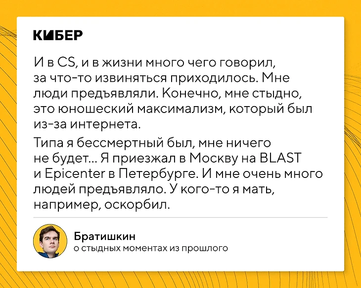 – И в CS, и в жизни много чего говорил, за что-то извиняться приходилось. Мне люди предъявляли. Конечно, мне стыдно, это юношеский максимализм, который был из-за интернета.