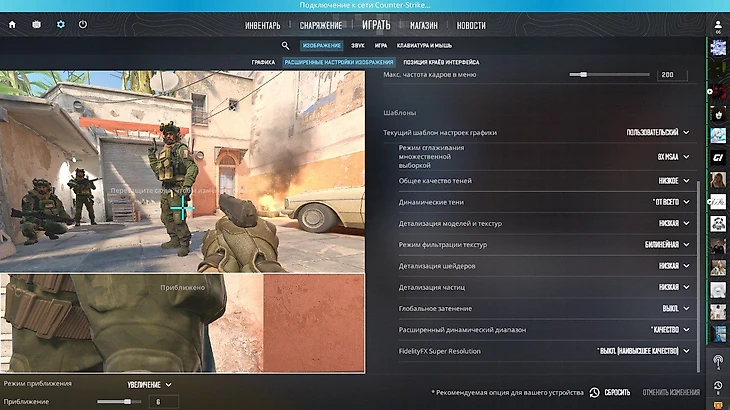 Максим играет с чувствительностью мыши 1,28 при DPI 800. Чувствительность в прицеливании – 1, eDPI – 1024, чувствительность Windows – 6.