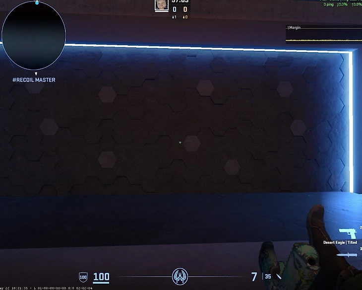 Максим играет с небольшим квадратным прицелом-перекрестием бирюзового цвета. С помощью такого удобно выцеливать голову соперника, но чтобы привыкнуть к нему после обычного прицела потребуется немного практики.