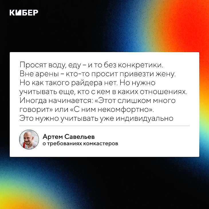 – Именно на арене особо нет. Просят воду, еду – и то без конкретики. Вне арены – кто-то просит привезти жену. Но как такого райдера нет.