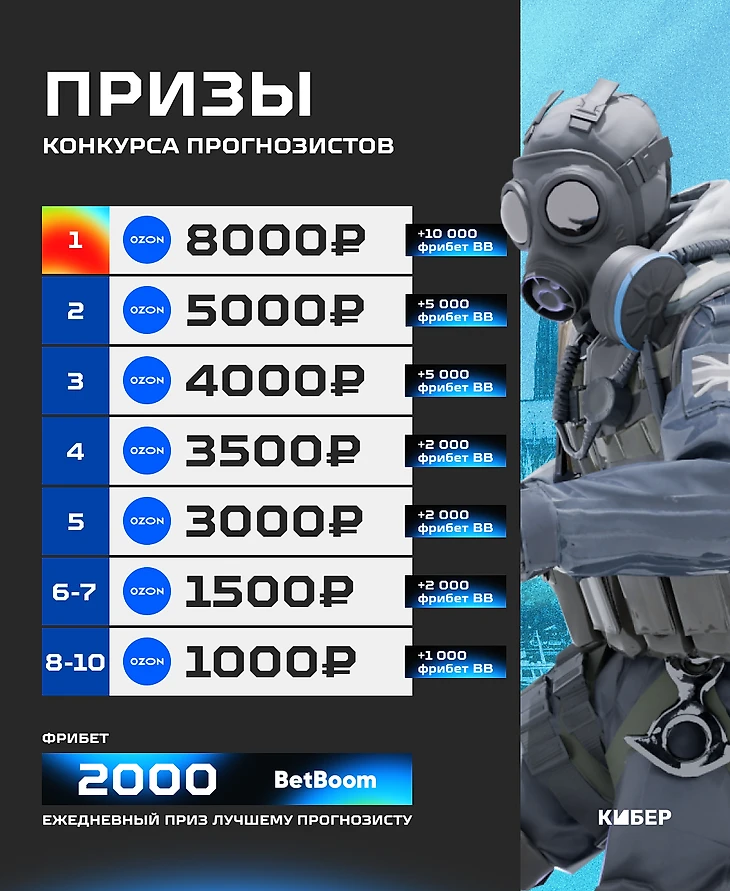 1-е место: Cертификат Озон 8000 рублей и фрибет 10000 от BetBoom