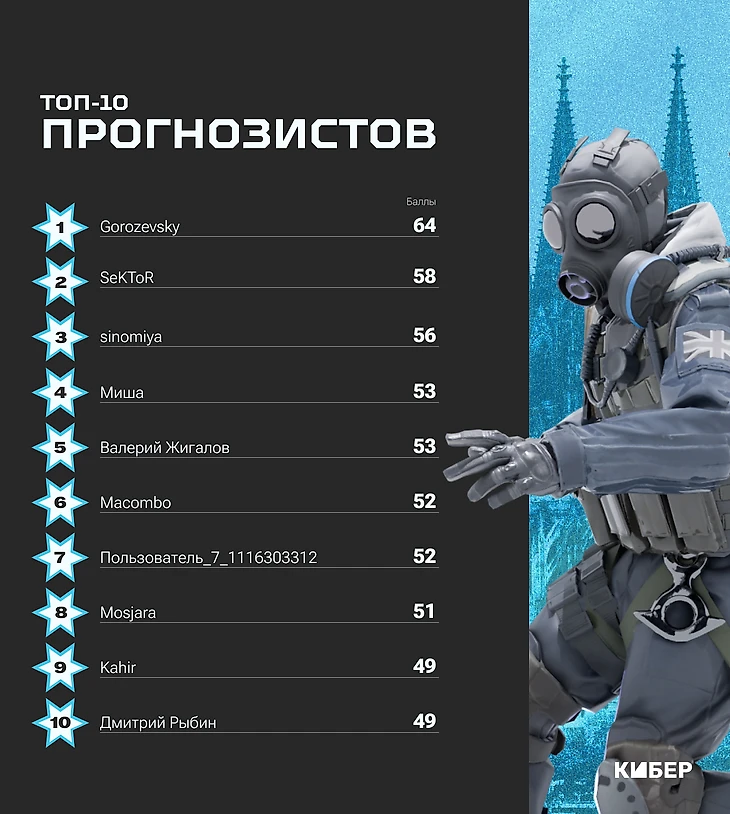 В конце каждого игрового дня мы будем публиковать пост с расписанием матчей на следующий день. Ваша задача – угадать результаты матчей. Собирать предикты мы будем в комментариях под ежедневными постами. В них же будем публиковать топ-10 прогнозистов.