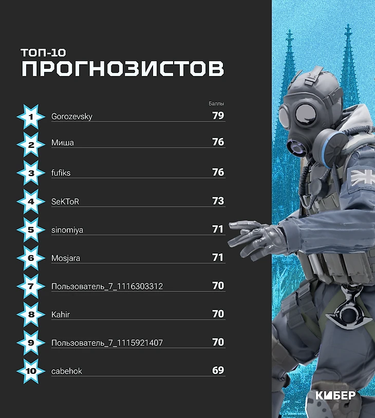 В конце каждого игрового дня мы будем публиковать пост с расписанием матчей на следующий день. Ваша задача – угадать результаты матчей. Собирать предикты мы будем в комментариях под ежедневными постами. В них же будем публиковать топ-10 прогнозистов.