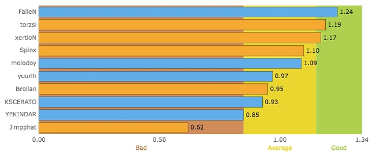 В первом четвертьфинале встретились NaVi и The MongolZ. Конечно, всё внимание было приковано к новому игроку “рождённых побеждать”. 18-летний makazze присоединился к коллективу месяц назад, заняв место любимца зрителей jL’а. И юный игрок из Косово не подвёл - рейтинг говорит сам за себя.