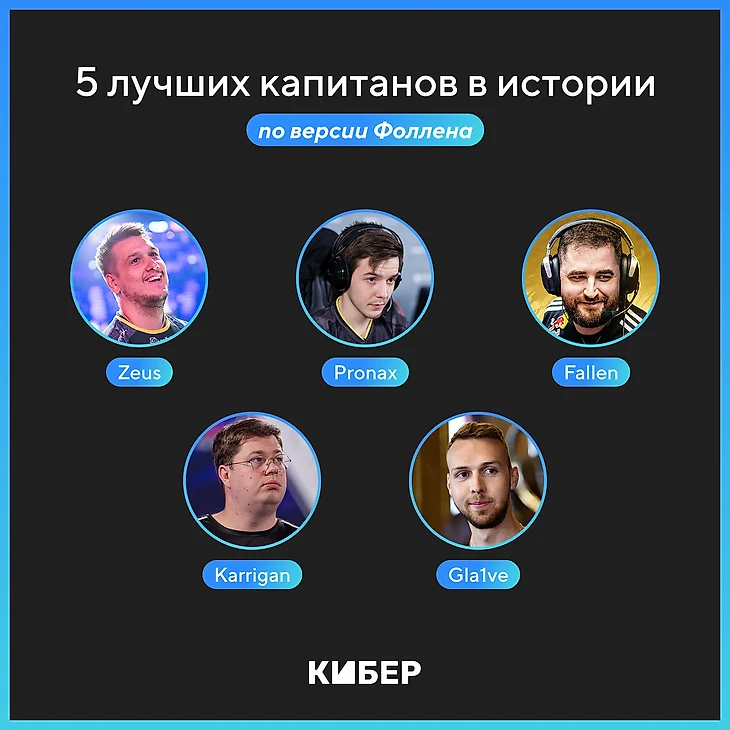 – Без привязки к местам: Karrigan, Pronax, я, Zeus, Gla1ve.