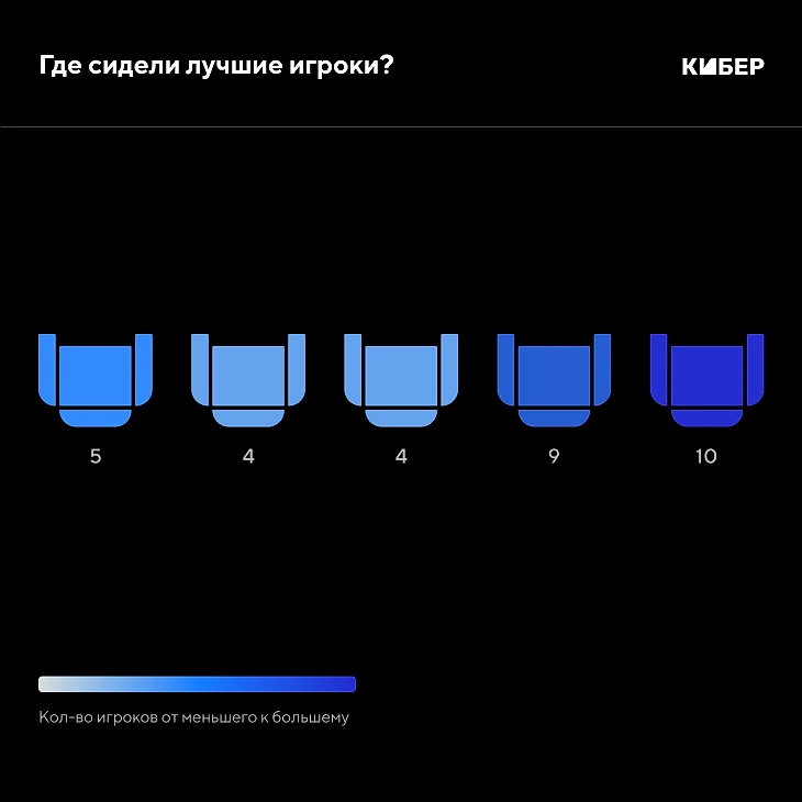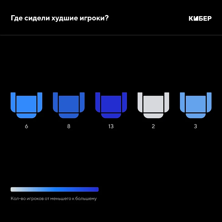 Чтобы исследование было полноценным, мы применили и другой способ подсчета: изучили, на каких местах чаще всего сидят лучшие игроки команд, а на каких – слабые.