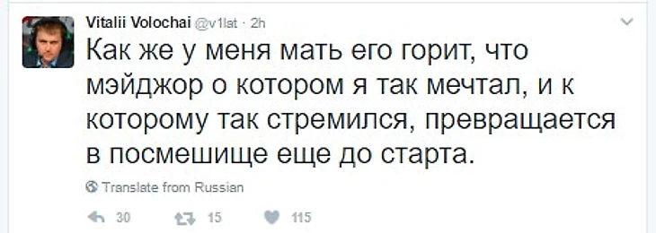 Комментатор студии RuHub Виталий «V1lat» Волочай в своем твиттере раскритиковал продажу билетов на The Kiev Major, а также призвал бороться с теми, кто занимается перепродажей билетов.