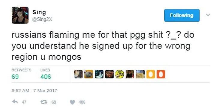 «Русские, которые обвиняют меня из-за этого случая с PGG, вы понимаете, что он зарегистрировался в неправильном регионе?»