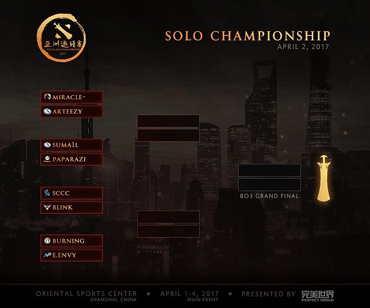 Амер «Miracle-» Аль-Баркави (Team Liquid) – Артур «Arteezy» Бабаев (Evil Geniuses)Сумаил «Suma1L» Хассан (Evil Geniuses) – Чжан «Paparazi» Чэньчжун (iG Vitality)Сун «Sccc» Чунь (NewBee) – Чжоу «bLink» Ян (Wings Gaming)Сюй «BurNing» Чжилэй (Invictus Gaming) – Джеки «EternaLEnvy» Мао (Team NP)