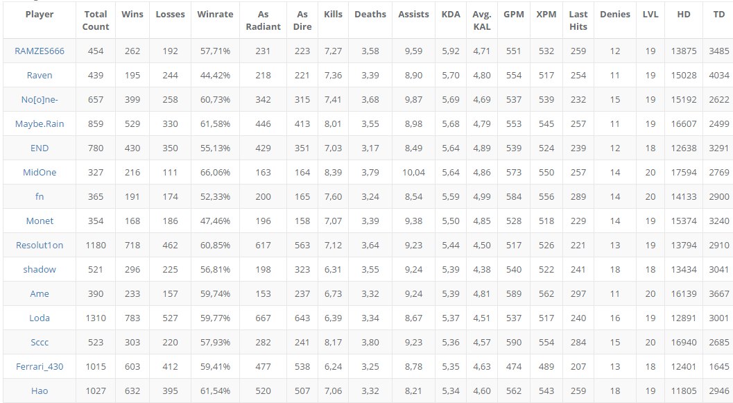 RAMZES666 по этому показателю лидирует – его средний показатель KDA составляет 5,92 за 454 матча. No[o]ne расположился на 3-й строчке с показателем 5,69 за 657 матчей.