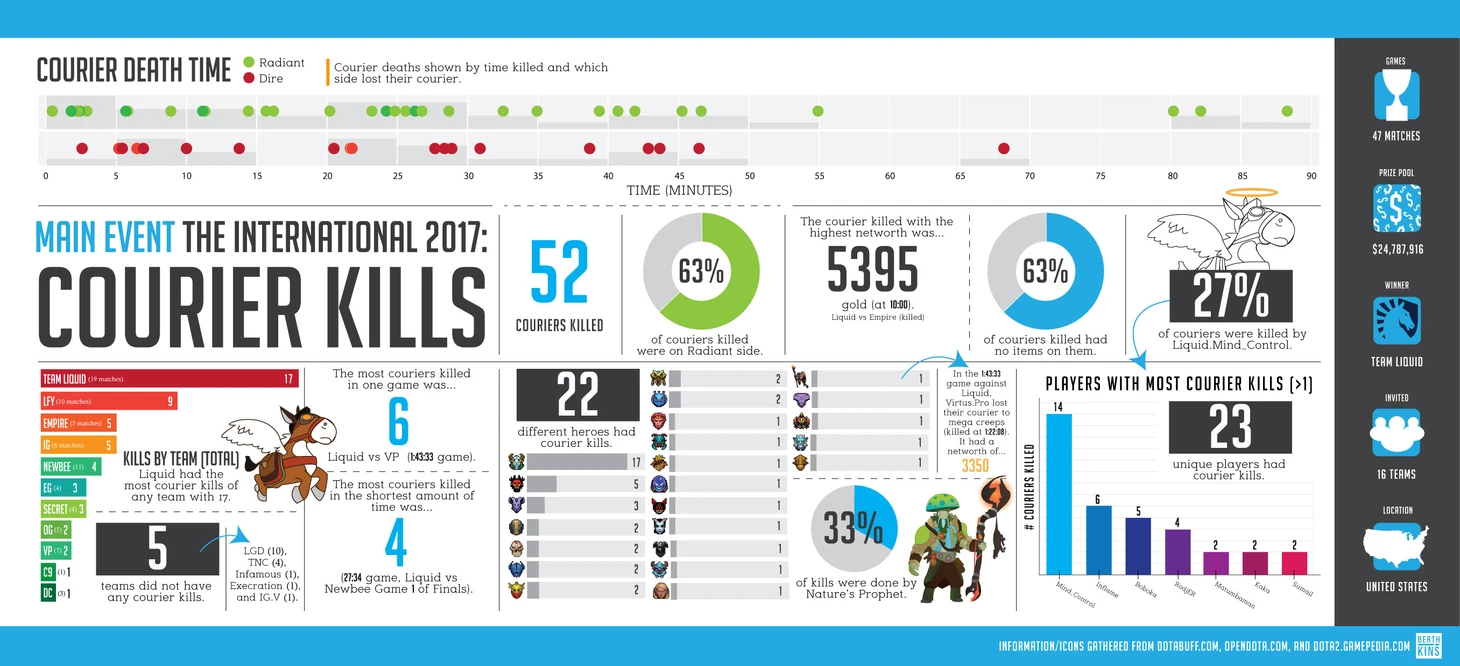 Пользователь реддита Berthikins создал инфографику про убийства курьеров на The International.