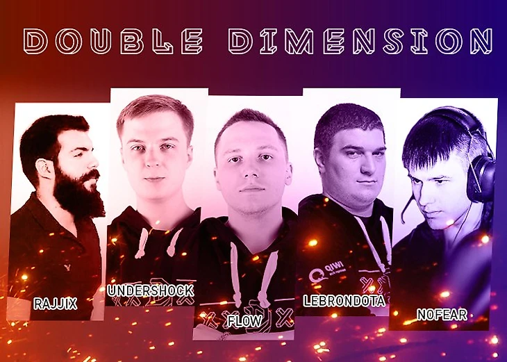 Состав Double Dimension: - Рой «Rajjix» Радджи (Carry) - Дмитрий «UnderShock» Большаков (Mid) - Александр «Flow» Сазонов (Offlane) - Никола «LeBronDota» Попович (Support) - Александр «nofear» Чурочкин (Support)