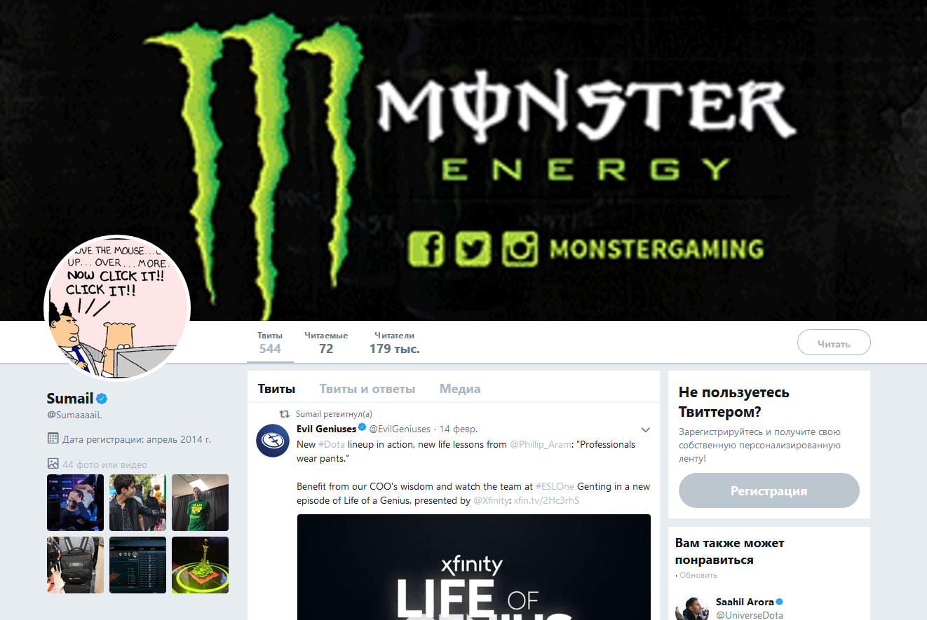 Игрок Evil Geniuses Сумаил «SumaiL» Хассан убрал символику команды в своем профиле в твиттере после поражения от Complexity в финале североамериканской квалификации на мейджор EPICENTER XL.