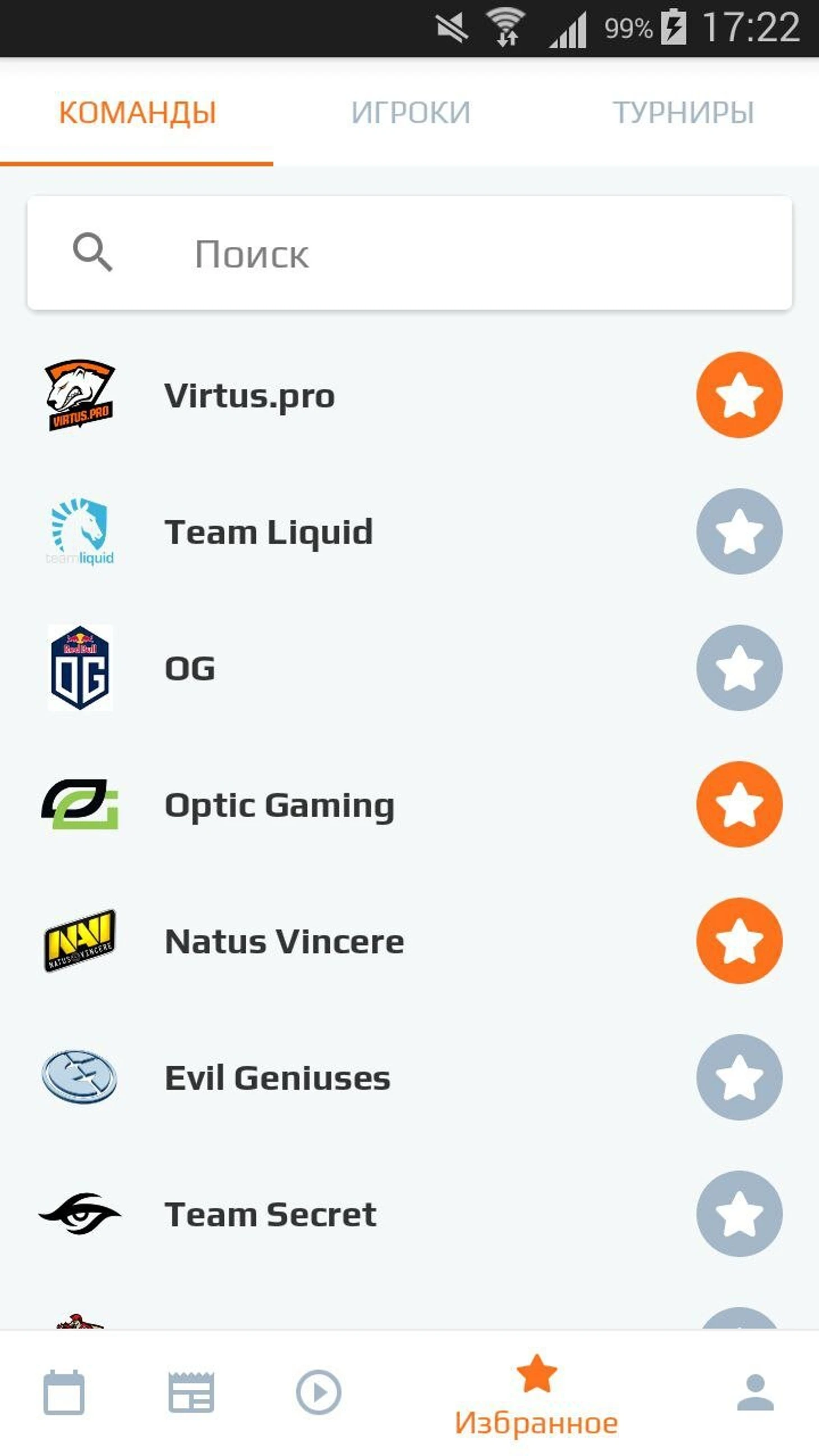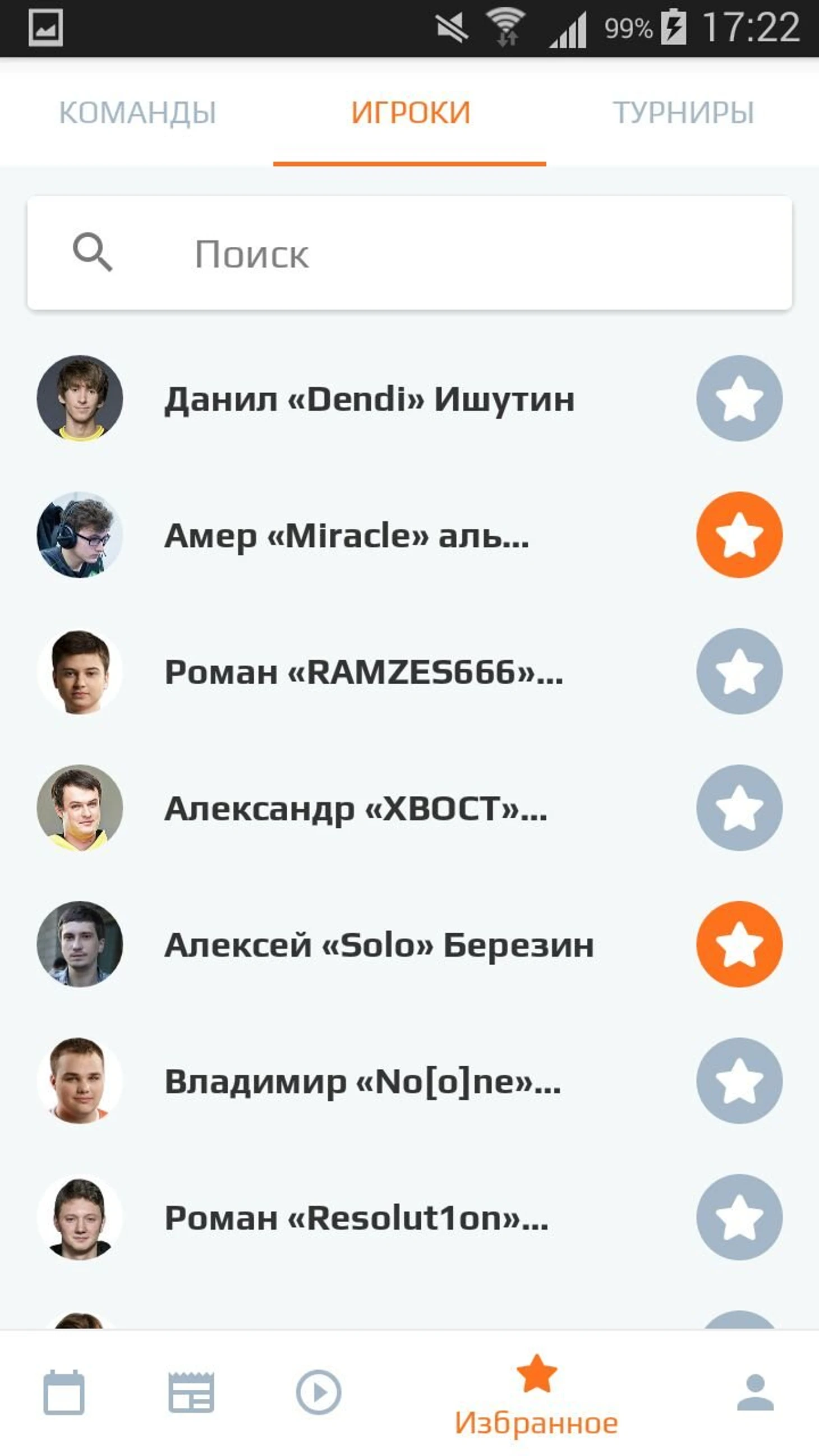 Если вы до сих пор этого не сделали, зайдите в избранное и отметьте любимые команды и игроков, чтобы не пропускать важные новости про них.