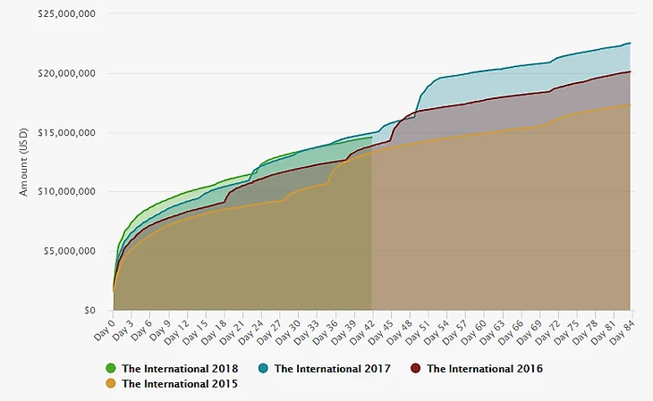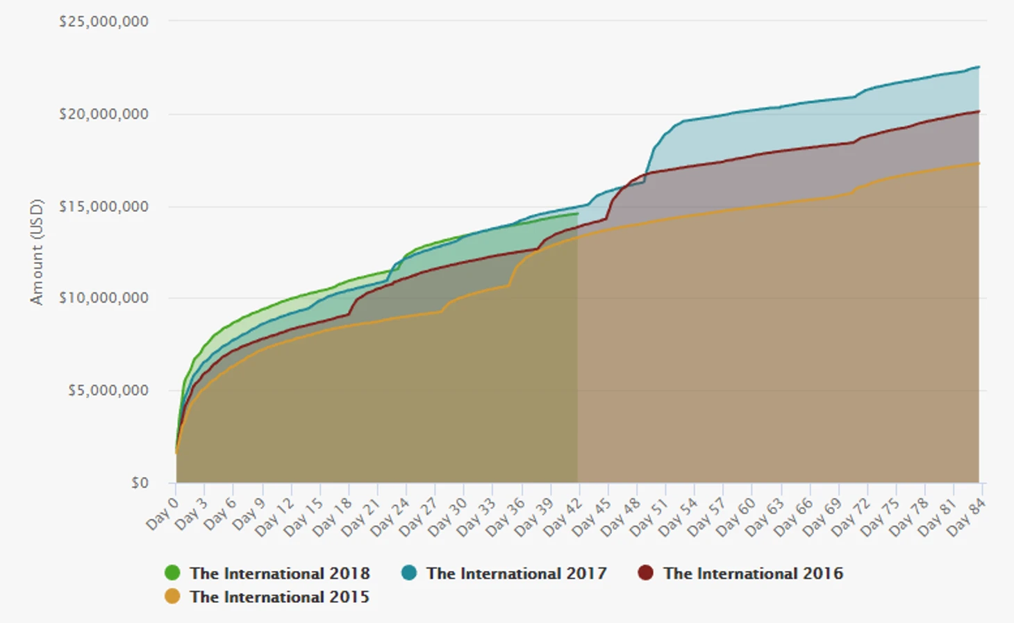 Призовой фонд TI8 уже неделю отстает от прошлогоднего
