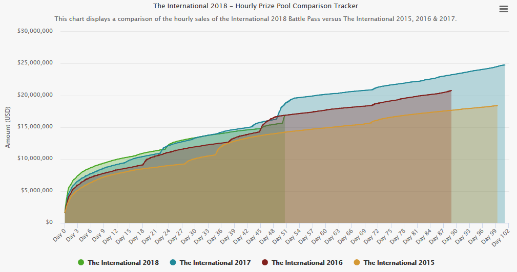 Это на тысячу долларов больше, чем было собрано за тот же срок в 2016 году. Призовой фонд по-прежнему отстает от The International 7, сейчас собрано на 11,74% или 1 792 022 долларов меньше.