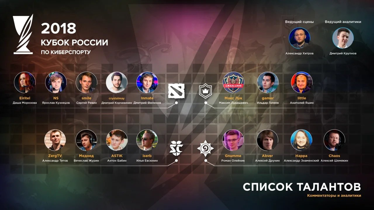 Федерация компьютерного спорта России опубликовала список комментаторов и аналитиков, которые будут освещать финальный этап кубка России по киберспорту.
