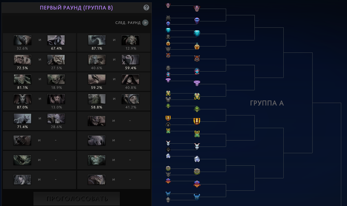 Самую уверенную победу одержал Morphling. В борьбе против Ликана он набрал 87 процентов голосов.