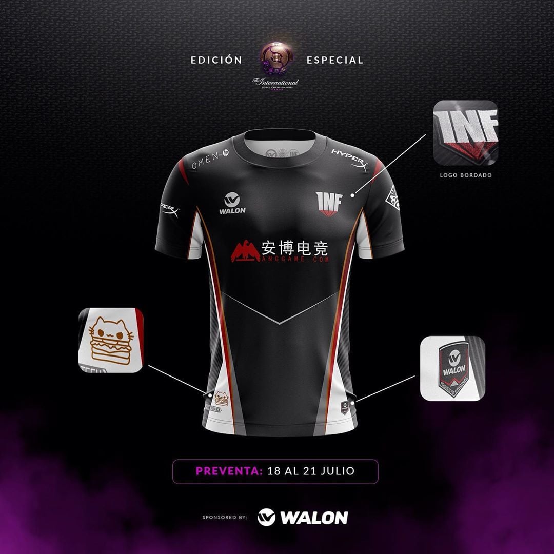 Футболки украшены изображениями аегиса и кота-бургера – логотипа Team Anvorgesa. Infamous подписала четырех игроков команды перед началом квалификаций на TI9.