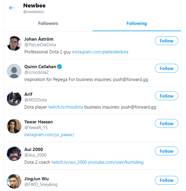 Newbee подписалась в твиттере на бывших игроков и тренера состава Forward по Dota 2.