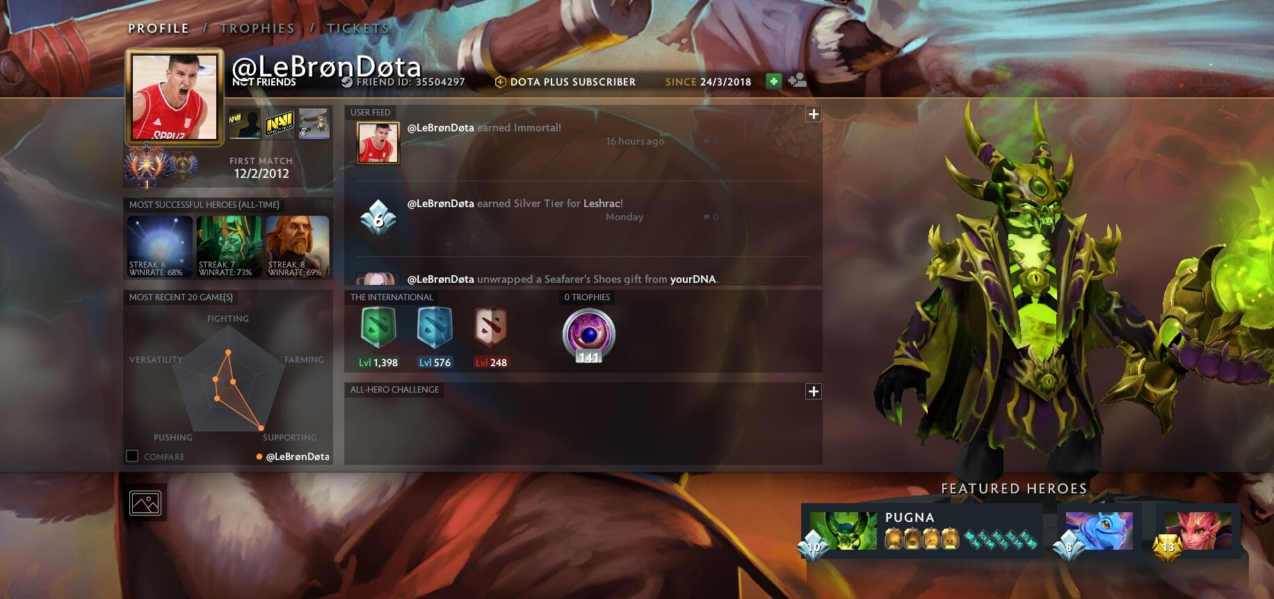 LeBron выиграл 8 калибровочных матчей из 10 и получил 8620 рейтинга саппорта. До обнуления у него было 8160 MMR.