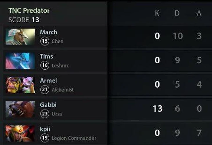 Четыре игрока TNC сделали 0 убийств за карту. Отличился только Ким «Gabbi» Виллафуерте – он сделал на Урсе 13 убийств.