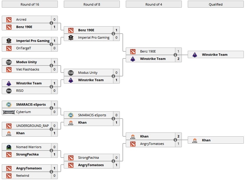 Состав Winstrike: Daxak, mellojul, AfterLife, ALOHADANCE, RodjERСостав Benz 190E: Saty, StormC4t-, SuperNova, qoval, sad_tomatСостав Khan: dyrachYO, ArrOw, chshrct, yamich, FishmanСостав AngryTomatoes: TTR, Imba4, Funn1k, Accell, Gilgir