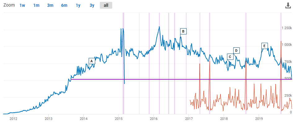 Падение пикового онлайна началось после выхода патча 7.23. Менее чем за месяц он снизился почти на 200 тысяч человек. 25 ноября пиковый онлайн составлял 704 тысяч пользователей, 9 декабря – 516 тысяч.