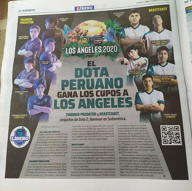 Libero – известная перуанская газета о спорте. Заметка появилась в блоке киберспорта.