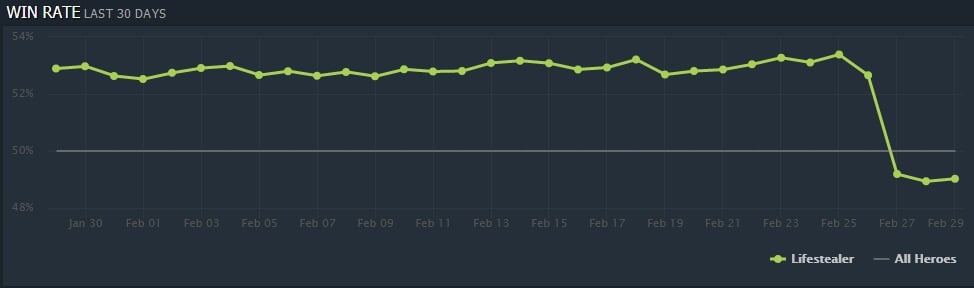 После релиза патча 7.24b винрейт Лайфстилера снизился с 52,66% на 49,03%.